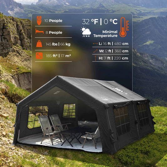 Coody 17.2 | RBM Outdoors (Koala 7) Black + Stove Caminus M - Inflatable Tents with Stove
