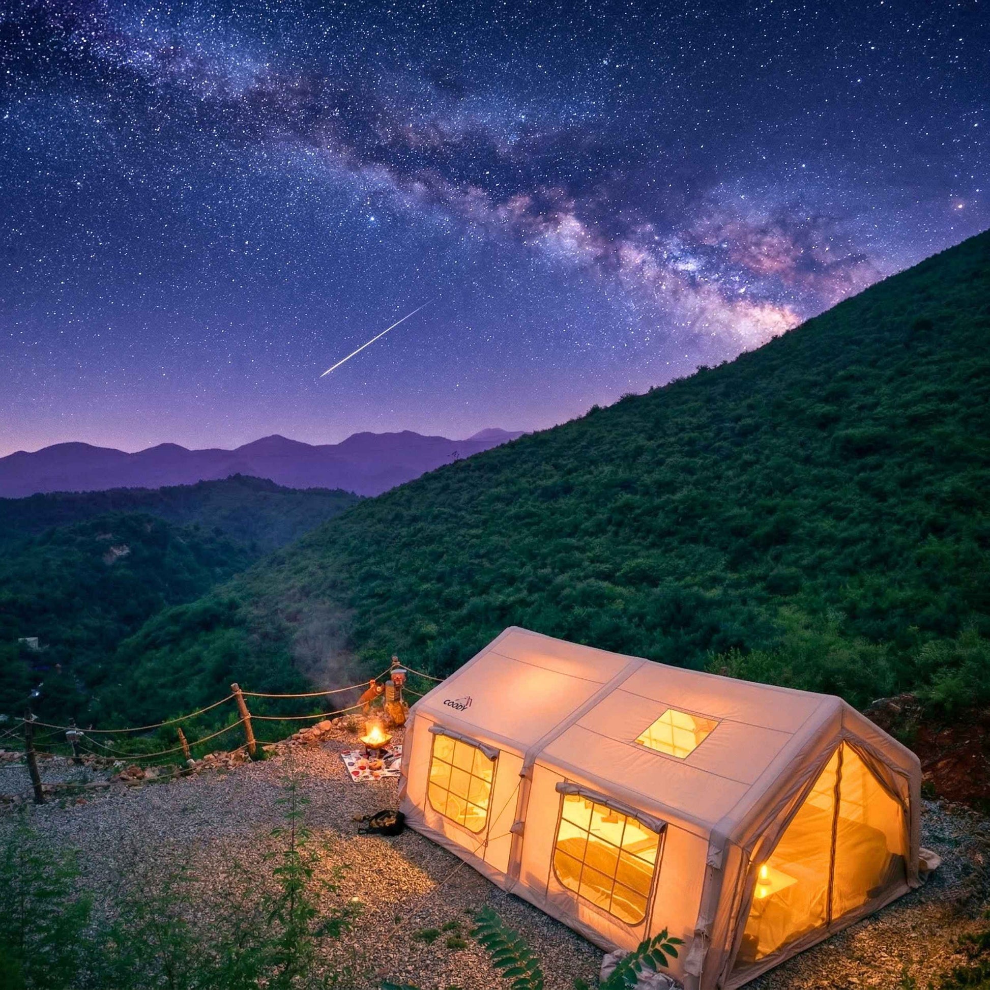 Whether you're looking for a large inflatable camping tent, a blow up cabin tent with stove jack, or a comfortable base for group adventures, the Koala-7 offers space, structure, and premium materials.