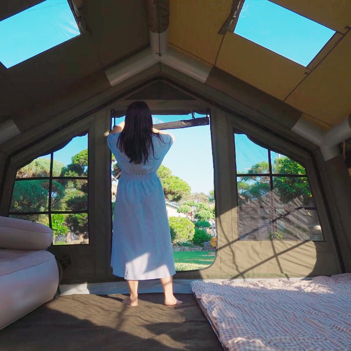 With a built-in stove jack, bug protection, and durable waterproof materials, it’s ideal as a glamping tent, a 4-season cabin tent, or an inflatable house tent. The fixed groundsheet and mesh windows add insulation and ventilation for a balanced environment inside.