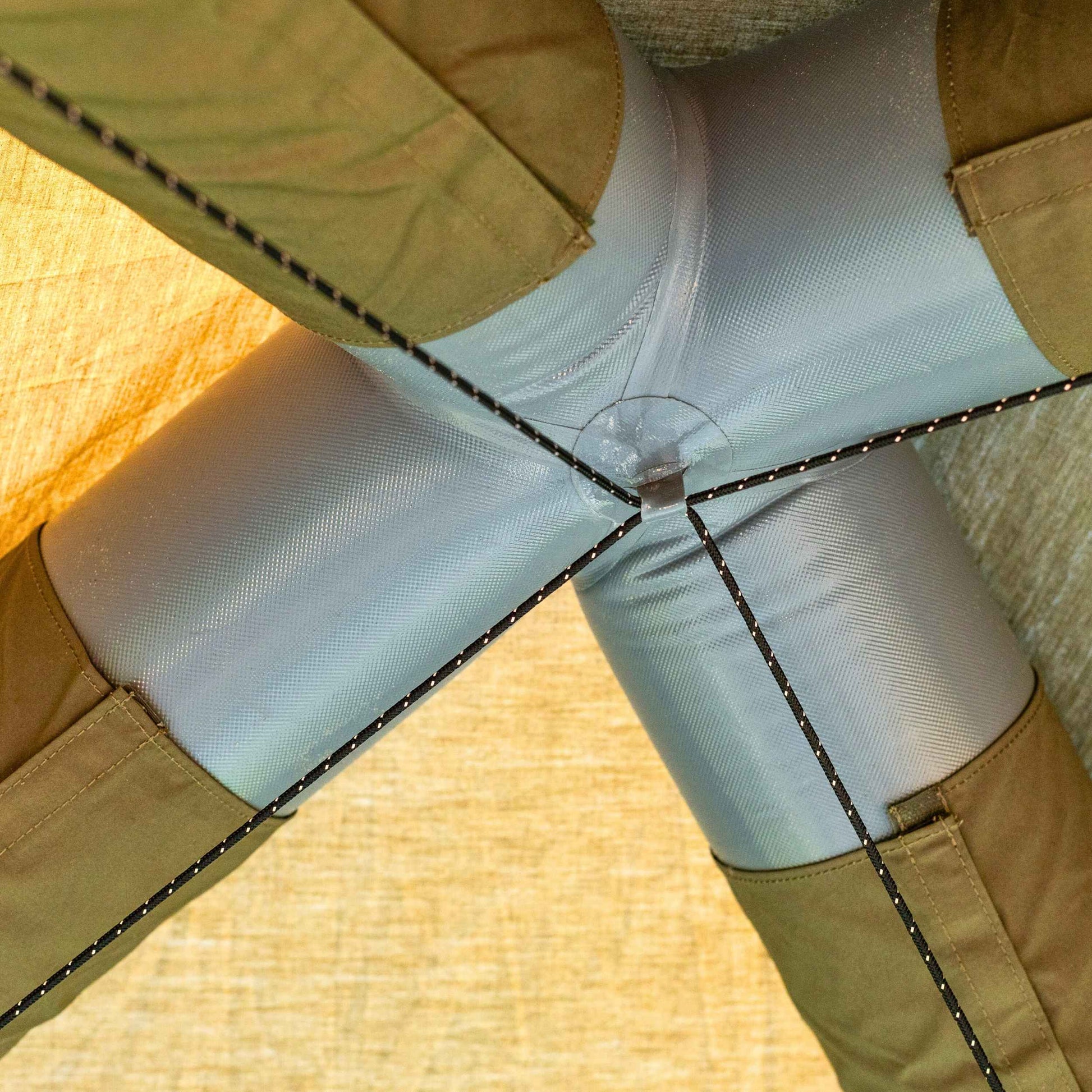 Made from breathable 210gsm Terylene Cotton, the Hub provides a comfortable interior climate while maintaining strength and durability. Its inflatable air-tube structure creates a stable, pole-free design that sets up quickly using a hand pump. Four entrances allow easy access from all sides, while roof windows bring in natural light and improve ventilation throughout the space.