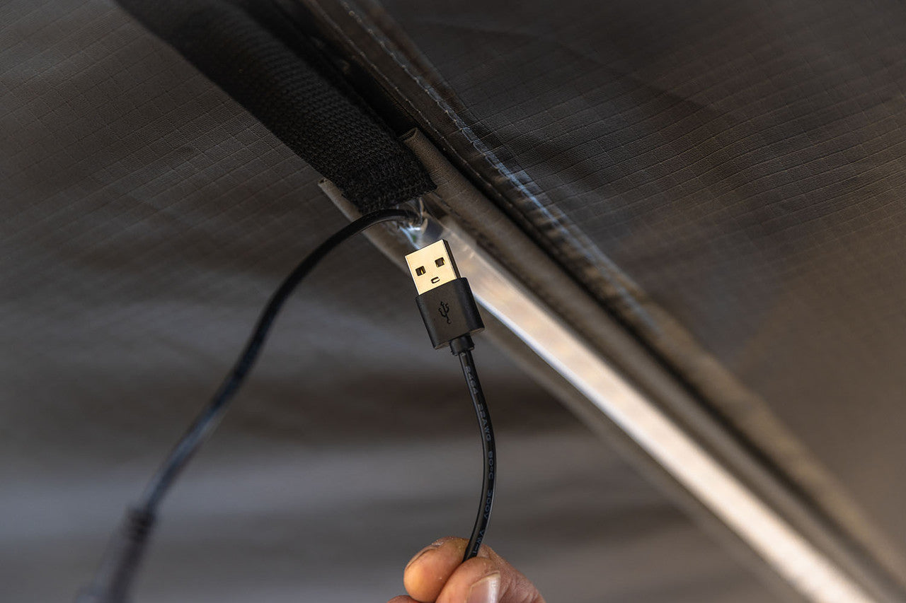 Enjoy late evenings and nighttime activities with the awning's integrated LED lighting. The tri-colored dimmable lights are USB-powered and allow you to control the brightness, creating the perfect ambiance for any outdoor setting. Whether you’re reading, cooking, or just relaxing, the LED lights ensure you’re never left in the dark.