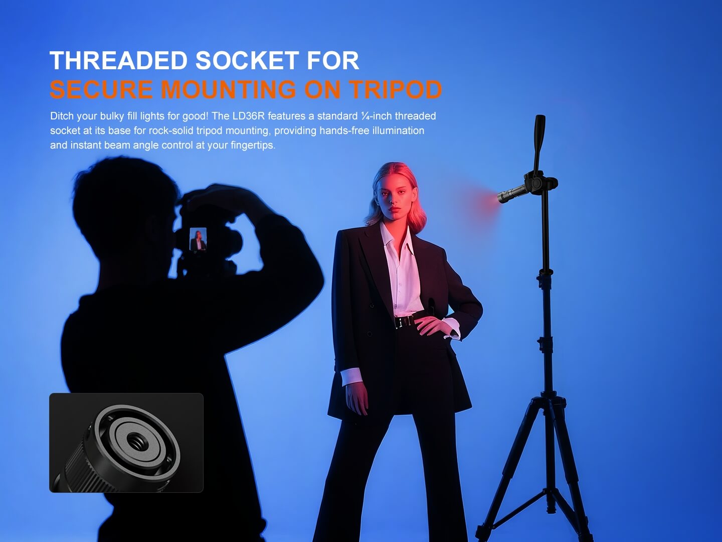 Thanks to stepless brightness and color regulation, you have complete control over your lighting environment. Whether you're capturing the perfect shot with the tripod-compatible threaded socket or creating ambiance with the included lampshade diffuser tip, the LD36R is engineered to adapt. It even features a unique breathing light mode to enhance visibility or add a soft aesthetic glow.