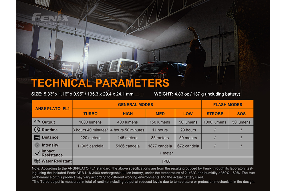 Fenix WT25R Adjustable Head LED Flashlight - 1000 Lumens