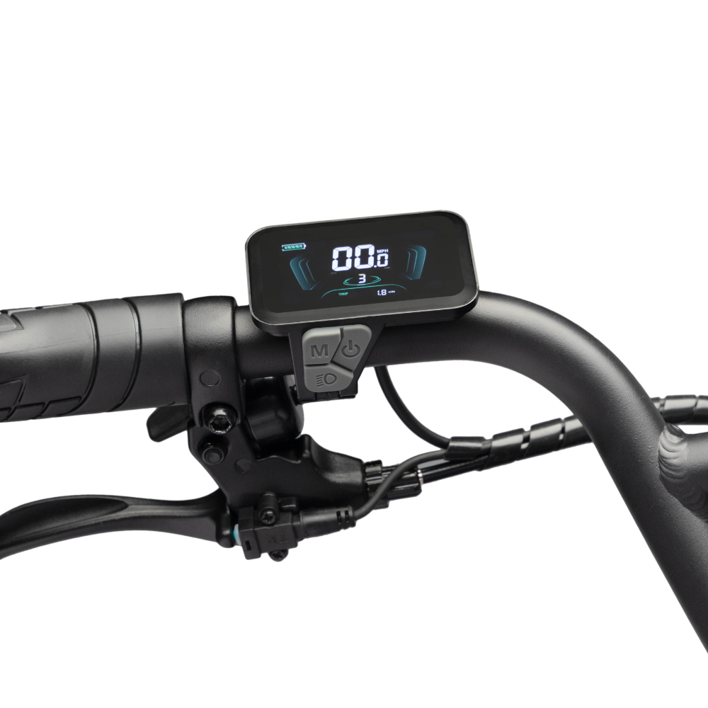 The MG Renegade is armed with 20 mph of 100% electric speed, an unlockable 24 mph Off-Road Mode, 48+ miles of range, a color display, 2-piston hydraulic brakes, a twist throttle, Highrise Handlebars, front and back lights, front and rear fenders, and a mullet wheel design with off-road tires.