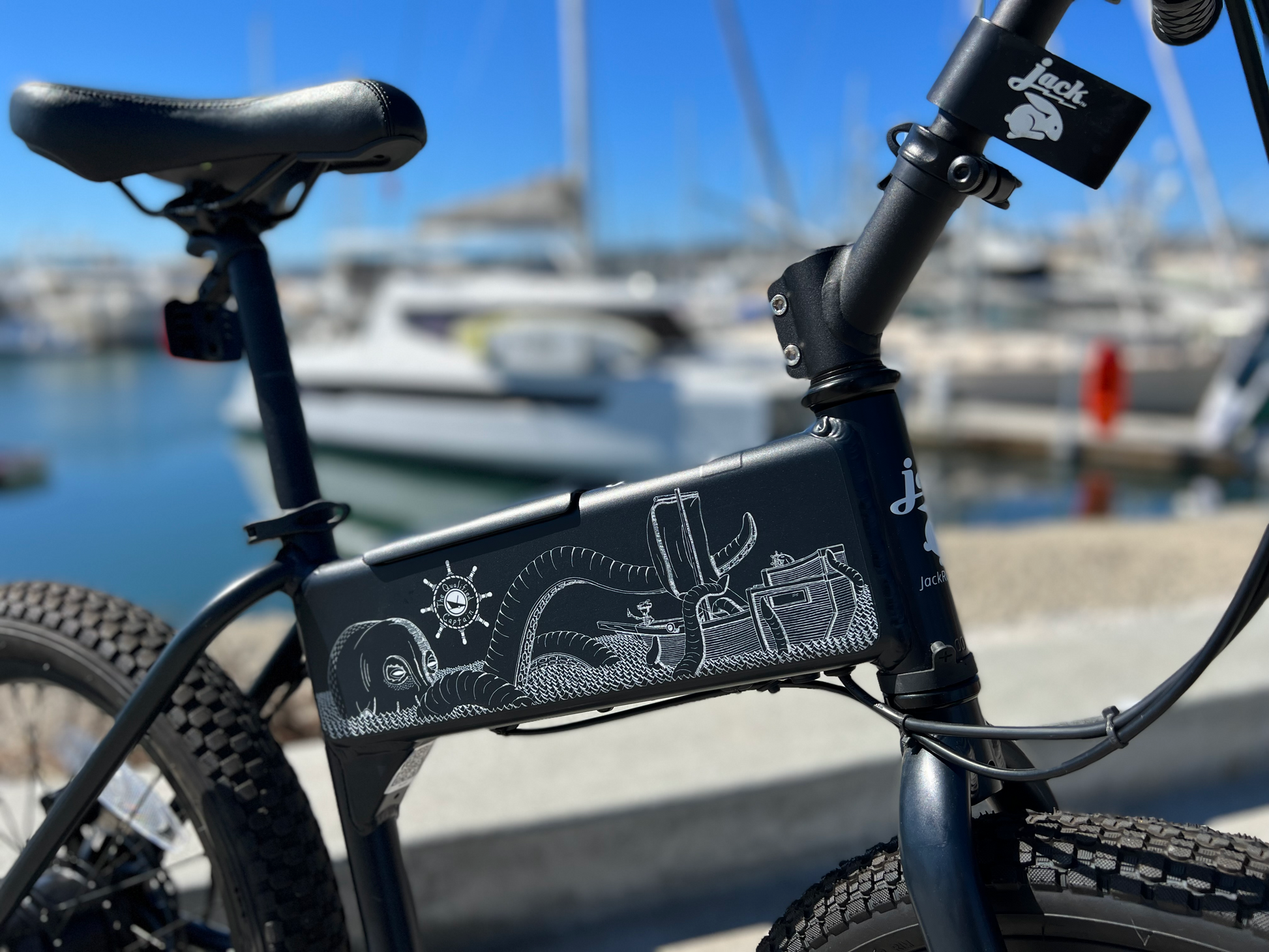 With a max speed of 20mph and weighing an ultralight 24 lbs, the JackRabbit micro ebike is small, but mighty. Like a chihuahua, but loveable.