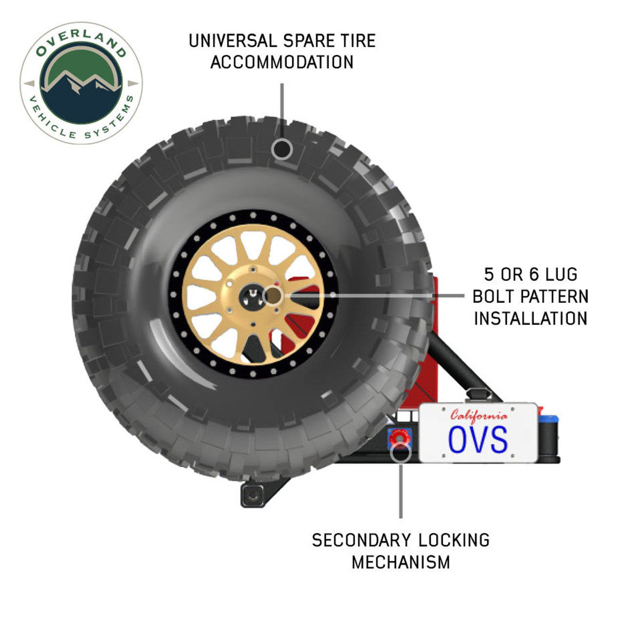 The carrier safely supports tires up to 40 inches in diameter, perfect for large off-road and overland setups.