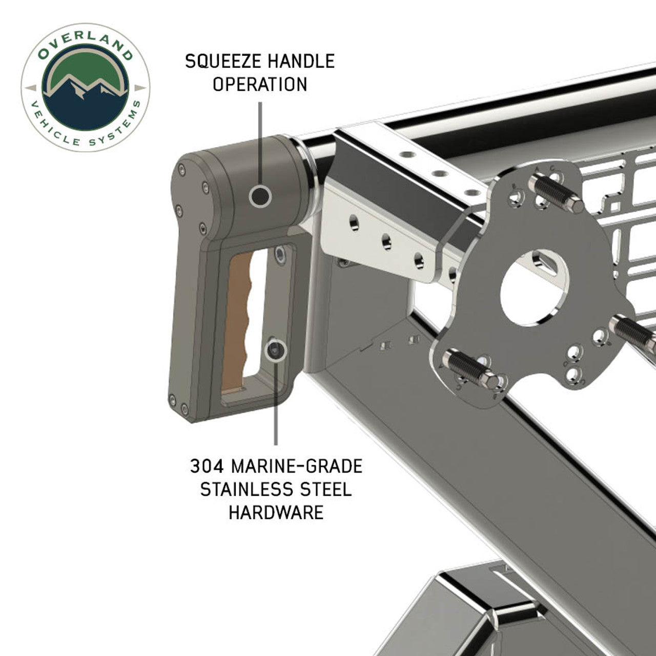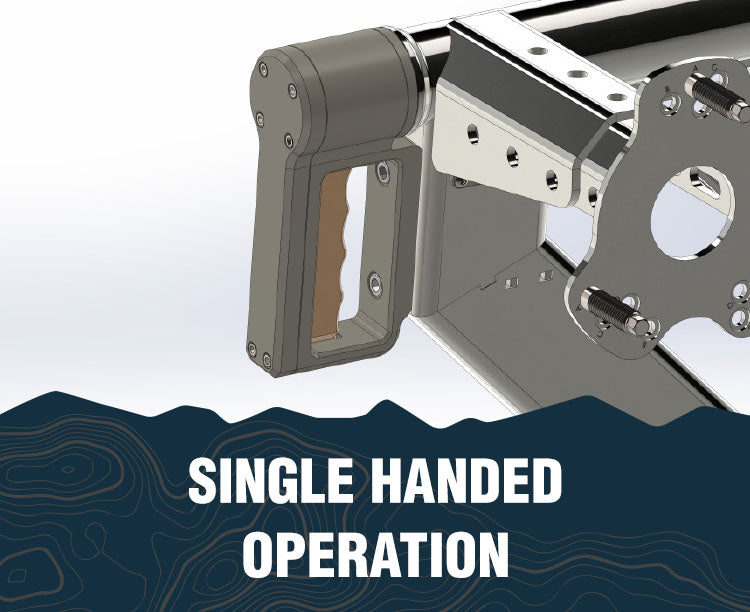 The Pivot Off-Road Hitch Tire Carrier features a unique squeeze handle, allowing for smooth, single-handed access to your spare tire and gear in seconds.