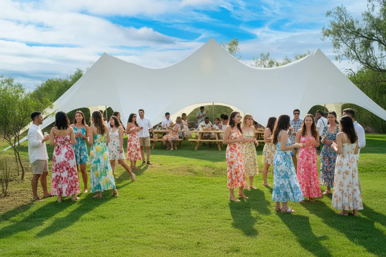 Versatile Use: Ideal for parties, weddings, tailgating, festivals, glamping, and more, its distinctive design sets it apart from traditional pop-up and event tents.