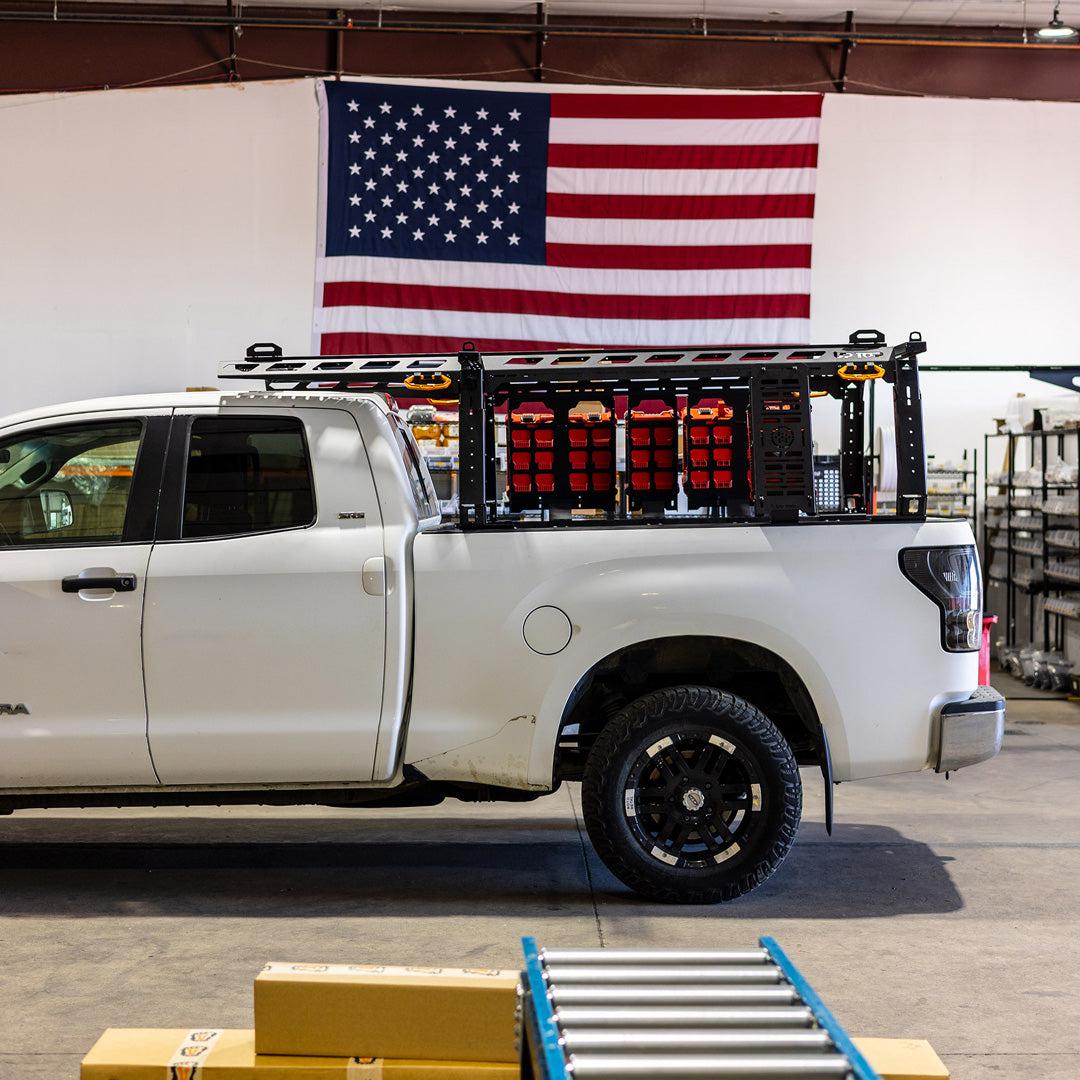 The WORKHORSE has arrived - a contractor's dream come true. This is the ultimate contractor / ladder / utility truck bed rack system. The Workhorse is an infinitely modular system designed to adapt and grow with you - kit it out as much as you'd like, or run it "bare bones" and add to it as the need arises. This rack was designed and 100% manufactured in house, by us, in America, by hard-working Americans.
