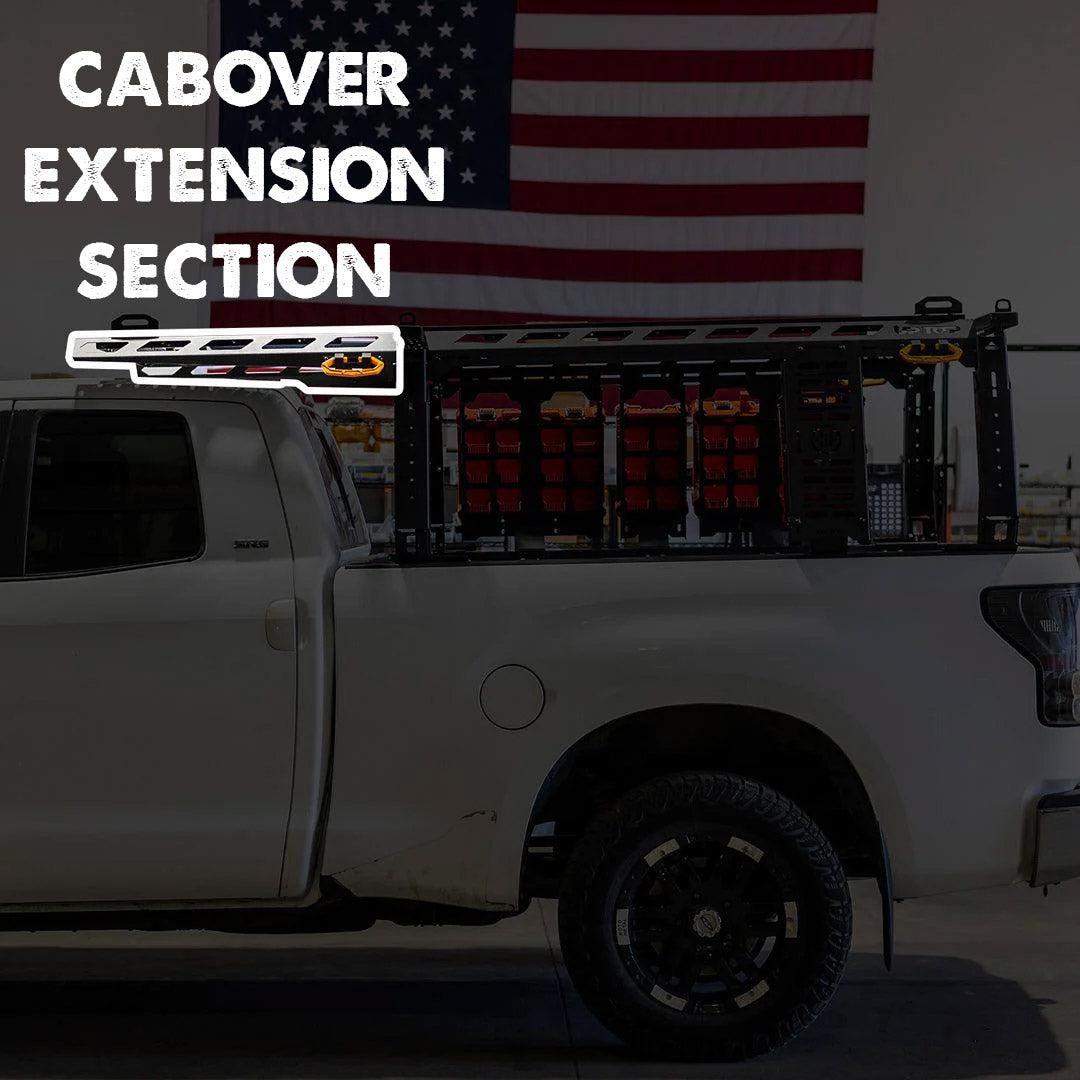 With modularity comes options. Not everyone needs the cabover or mounts along the side, etc. We sell this rack as a base system (4 adjustable legs, 2 adjustable crossbars, and the top rail that connects the front and rear legs) - this is everything you need to get up and running and start loading the rack out. If you need or want the the cabover (the part that extends over the cab of the truck), you can add that as an optional component. The Cabover does automatically get you the 8' sections of l-track that run along the top of the rack - the l-track does not come on the base rack system alone. If you decide you want the cabover later, you can add it down the road.